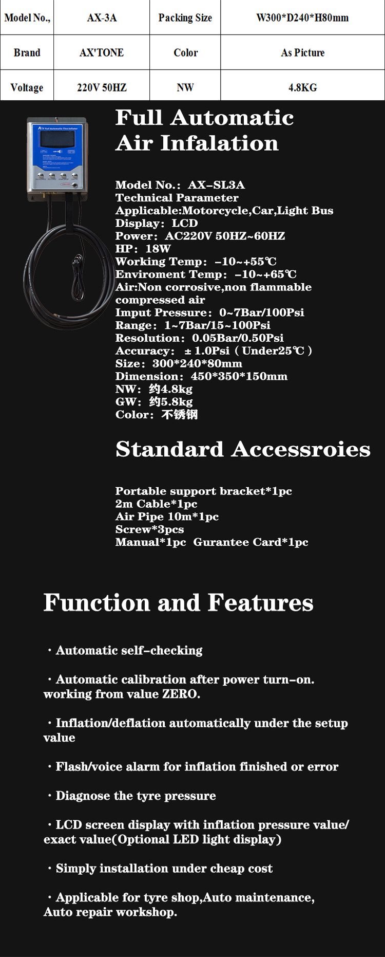 hits:302Tire automatic inflator